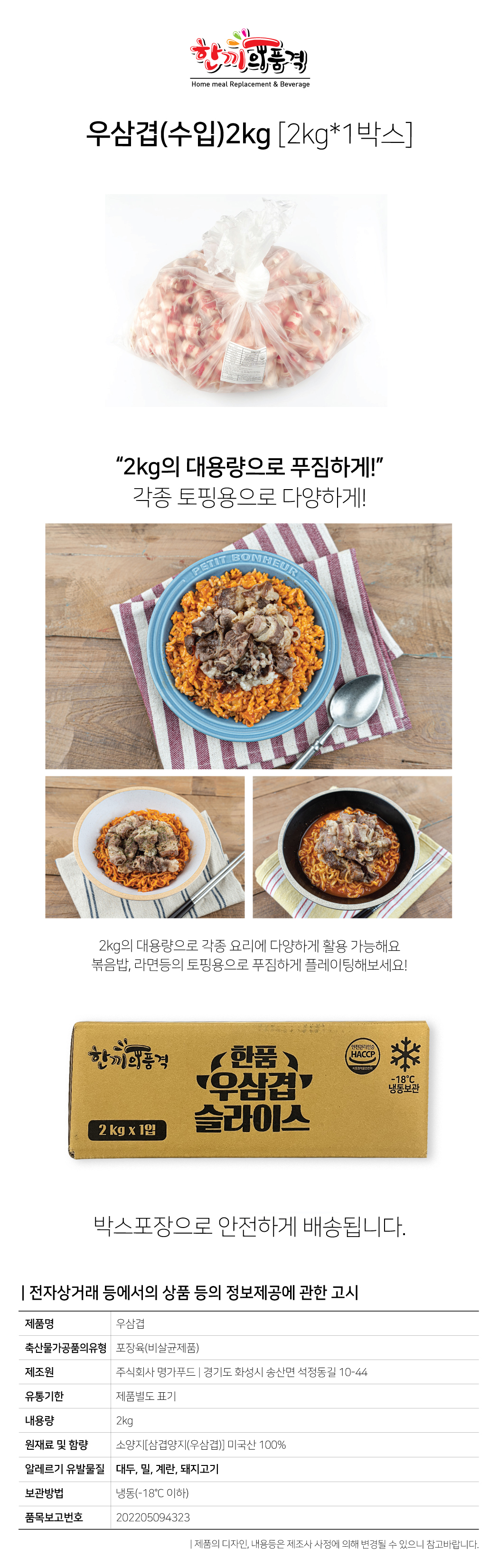 [한품]우삼겹슬라이스2kg